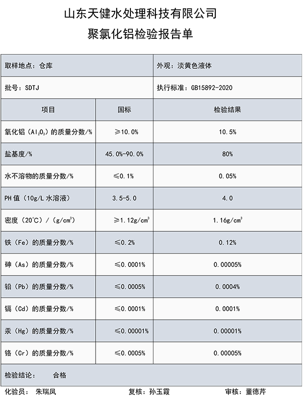 2、生产用按聚氯化铝固体:清水=1:9到1:15重量比(液体产品采用1:2到1:5)混合溶解即可。氧化铝含量低于1%的溶液易水解,会降低使用效果,浓度太高不易投加均匀。